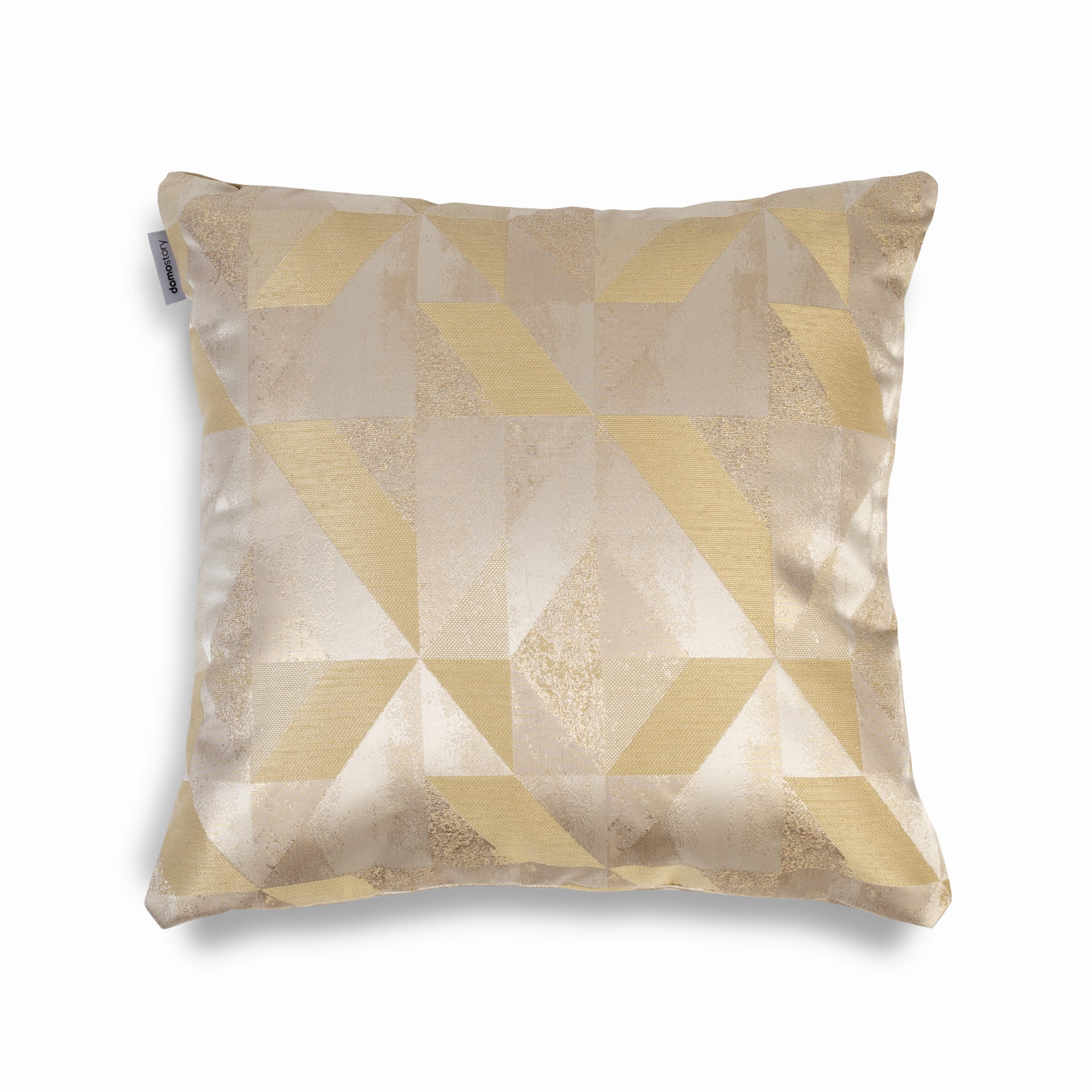 Kremowo-złota poduszka w dwóch rozmiarach do wyboru. Kwadratowa o rozmiarze 45x45 w geometryczne wzory przeplatane złotą nicią. Idealna propozycja do wnętrz w stylu klasycznym, glamour a także nowoczesnym. Łącznie z prostokątną wersją tworzą gotową propozycję zestawu.
